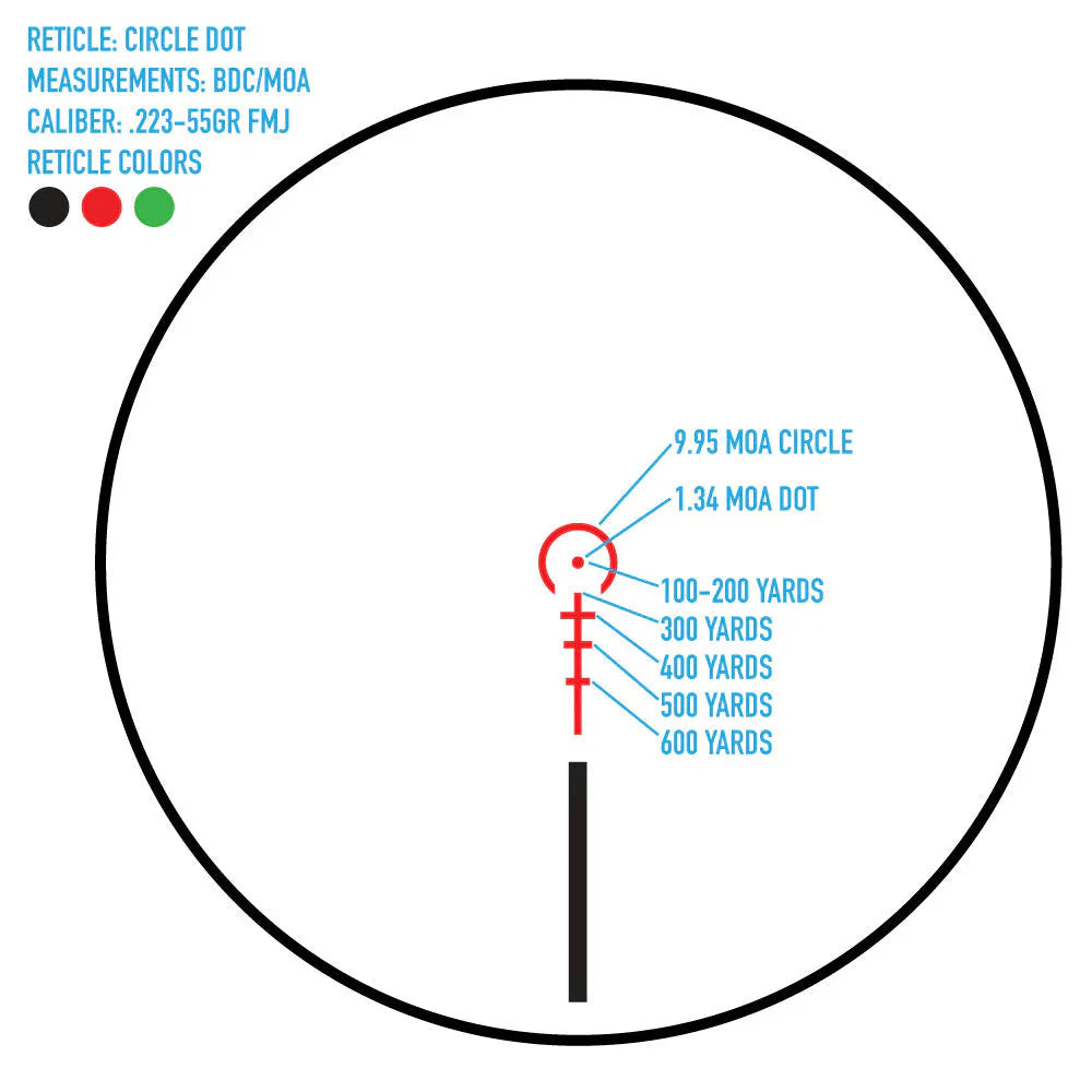 Pour une lunette de visée puissante et polyvalente, ne cherchez pas plus loin que la Firefield RapidStrike 1-6x24 ! La plage de grossissement de cette optique est idéale pour la chasse au sanglier et aux nuisibles ou pour les compétitions 3-gun. La RapidStrike 1-6x dispose d'une lentille entièrement multi-traitée et d'un réticule Circle Dot rouge, vert ou noir avec 5 niveaux de luminosité pour s'adapter à votre environnement et à vos préférences de cible.